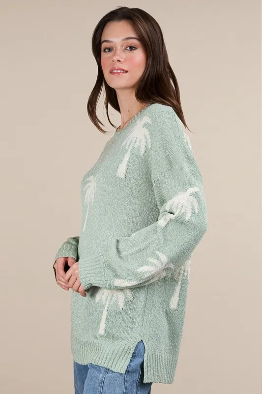 VERY J Palm Tree Graphic Oversized Knit Sweater