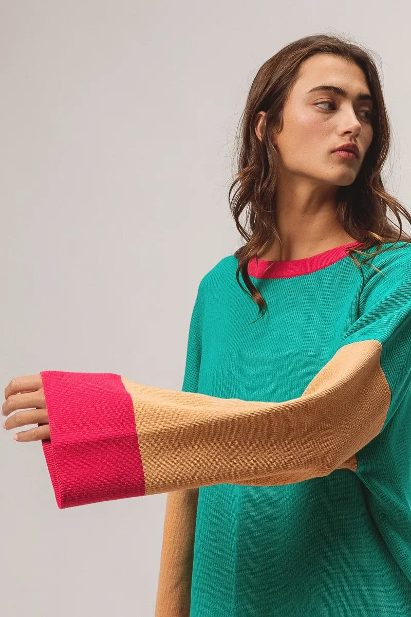 Zenana Round Neck Raglan Long Sleeve Sweater