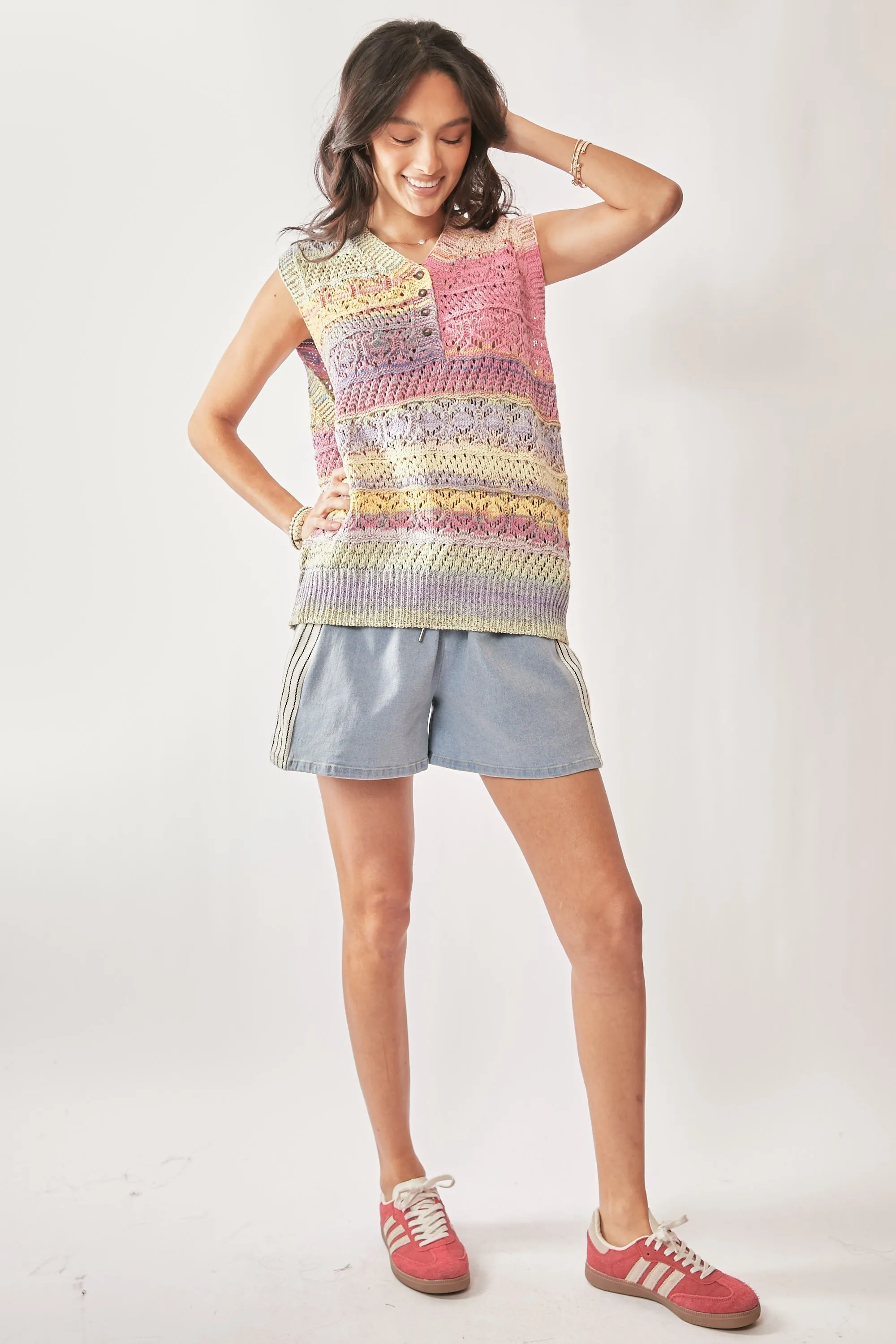 Davi & Dani Multi Color Crochet Sleeveless Knit Vest Top