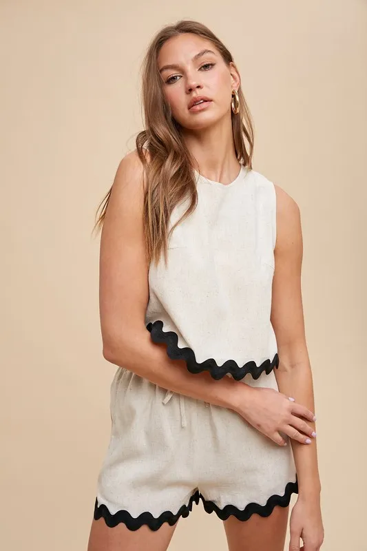 Annie Wear Ric Rac Trim Detailed Top & Shorts Set