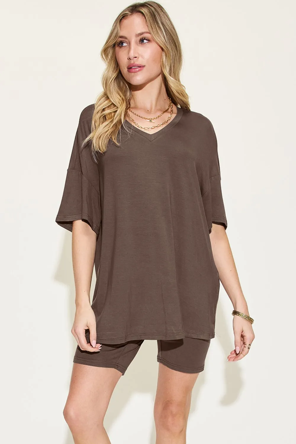 Basic Bae Full Size V-Neck Drop Shoulder T-Shirt and Shorts Set