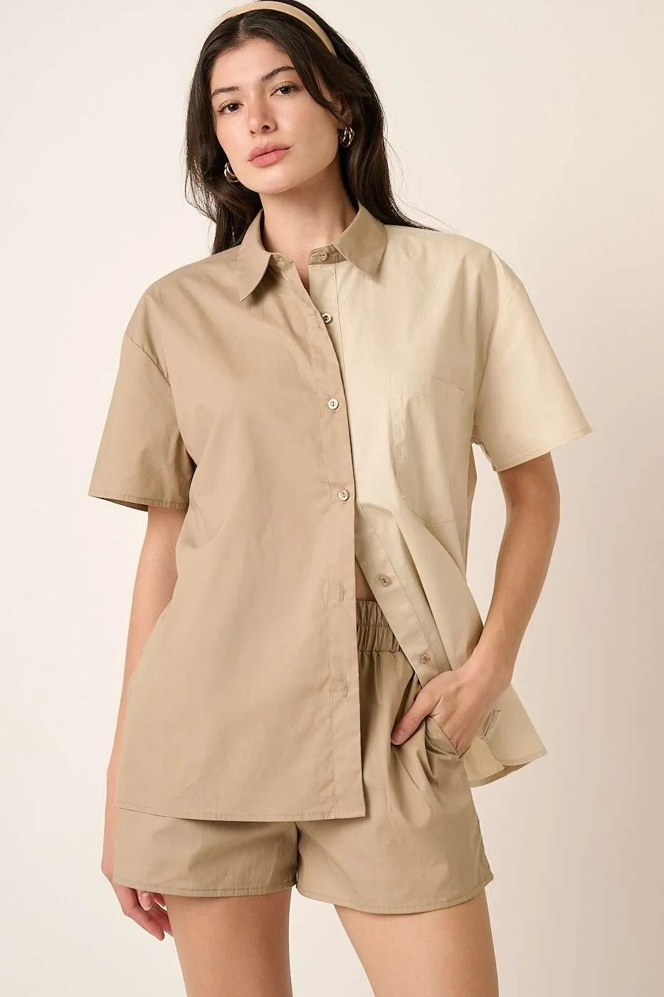 Mittoshop Color Block Short Sleeve Shirt and Shorts Set